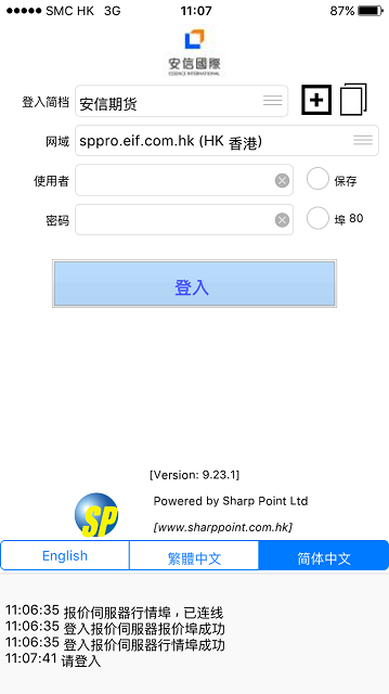 - 直接於“綱域” 欄內輸入“sp-sh01.eif.com.hk”或"sp-hk01.eif.com.hk",然後輸入本公司開戶提供之“使用者” 帳號(可勾選保存)及“密碼” , 然後登入。